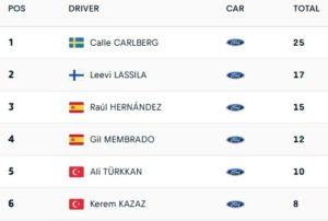 Det ble den reneste parademarsjen for svenske Calle Carlberg og Jørgen Eriksen fra Kongsvinger. Etter å ha vunnet både junior-EM og EM for Rally4 i fjorårets sesong, har de tatt steget opp i Junior-VM der alle kjører Ford Fiesta Rally3-biler. Overgangen til denne bilen og dette mesterskapet var ikke noe problem for Calle og Jørgen i deres aller første løp i årets VM. De vant ikke mindre enn 12 av de 18 fartsetappene i junior-klassen. De åpnet litt forsiktig, men tok ledelsen allerede fra SS3 på fredag formiddag og ga den aldri fra seg. De ledet med 43.7 sekunder til finske Leevi Lassila etter SS8 ved nattopphold fredag kveld. På lørdag økte de ledelsen til samme Lassila til 1minutt og 19.5 sekunder. Da kom i mål i Umeå etter 18 kjørte etapper hadde de en margin på 1.52.5 til Lassila og hans kartleser Mikko Lukka.