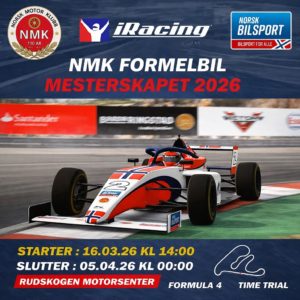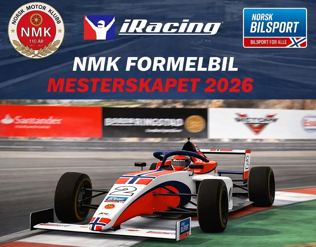 NMK E-sport inviterer i samarbeid med Norges Bilsportforbunds E-sportseksjon til NMK Formelbil Mesterskapet 2026 på iRacing.